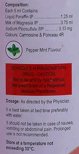 Sodium Picosulfate (3.33 mg per 5 ml dose) — a stimulant laxative; stimulates the bowel to increase movement and promote stool evacuation.