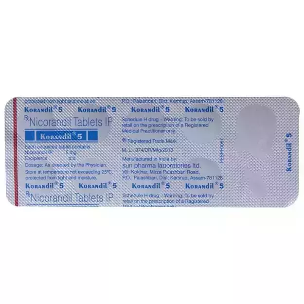Korandil 5 Tablet is prescribed for the prevention and treatment of chest pain related to the heart (angina). It is generally recommended when other medications are not effective or suitable. The medicine lowers the risk of angina by relaxing blood vessels, improving circulation, and ensuring better oxygen supply to the heart.
