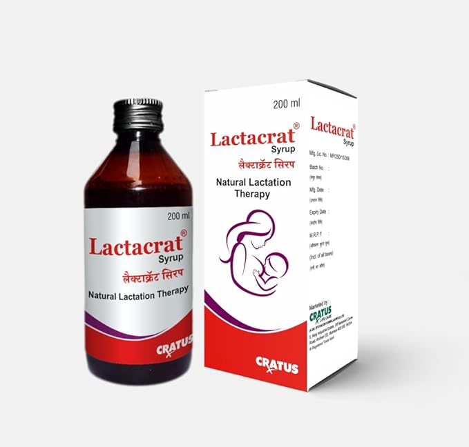 Lactacrat Syrup is an Ayurvedic herbal formulation designed to promote healthy lactation and enhance breast milk production in new and nursing mothers. It contains a blend of natural ingredients such as Asparagus racemosus (Shatavari), Glycyrrhiza glabra (Yashtimadhu), Pueraria tuberosa (Vidarikand), Ocimum sanctum (Tulsi), and Nigella sativa (Krishnajirak). These ingredients are known for their lactation-boosting, immune-supportive, and health-enhancing properties.