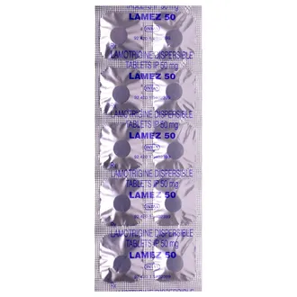 Lamez 50 Tablet DT is a medicine used for the management of epilepsy and bipolar disorder. It helps by calming overactive signals in the brain that can trigger seizures (fits) and also helps to stabilize mood swings in bipolar disorder.