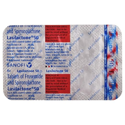 Lasilactone 50 Tablet is a combination medicine used to manage fluid retention (edema) and high blood pressure. It helps remove excess water and salts from the body by increasing urine production, which in turn reduces swelling in the legs, lungs, or other parts of the body. By easing this fluid overload, it also lowers strain on the heart and improves breathing in patients with certain heart, liver, or kidney conditions.