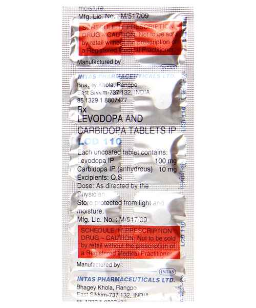 LCD 110 Tablet contains Levodopa and Carbidopa. Levodopa converts into dopamine inside the brain, helping to control movement. Carbidopa ensures more Levodopa reaches the brain by preventing its breakdown in other parts of the body, making the treatment more effective.