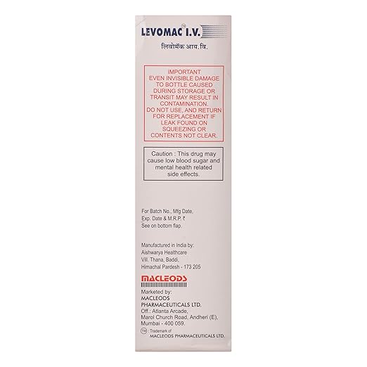 Levomac 500 mg Infusion is a fluoroquinolone antibiotic formulated for intravenous administration, used to treat moderate to severe bacterial infections. It is generally prescribed in hospital or clinical settings where oral medicines may not be sufficient or when faster action is required. This infusion is effective against respiratory tract infections, urinary tract infections, skin and soft tissue infections, gastrointestinal infections, and certain systemic infections. The medicine works by inhibiting bacterial DNA replication, thereby preventing bacterial multiplication and eliminating infection-causing organisms. Doctors recommend Levomac 500 mg Infusion when immediate antibacterial effect is needed or in patients unable to take oral tablets. It provides quick symptom relief by reducing fever, inflammation, chest congestion, urinary discomfort, or pain caused by bacterial invasion. This infusion should always be administered under professional medical supervision to ensure safety, correct dosing, and effectiveness in controlling infection.