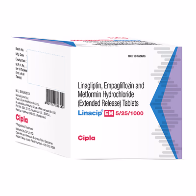 Linacip EM 5/25/1000 Tablet ER is a prescription medication designed to help adults with type 2 diabetes manage blood sugar levels and lower the risk of heart-related complications. It works through a combination of three active ingredients to control glucose levels in multiple ways.