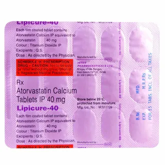 Lipicure 40 Tablet belongs to a group of medicines known as statins. It helps reduce cholesterol levels in the body and lowers the risk of heart-related problems such as heart attacks and strokes. Cholesterol is a fatty substance that can accumulate in the blood vessels, causing them to narrow, which may result in serious cardiovascular complications.