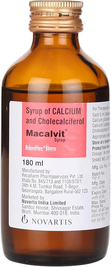 Macalvit Syrup is a nutritional supplement designed to support healthy bones and joints. It contains calcium along with vitamin D3, which together help maintain strong bones and may reduce the likelihood of developing osteoporosis. Calcium plays an essential role in the proper functioning of muscles, nerves, cells, and the skeletal system, while vitamin D3 aids the body in absorbing calcium effectively, contributing to overall bone strength and well-being.