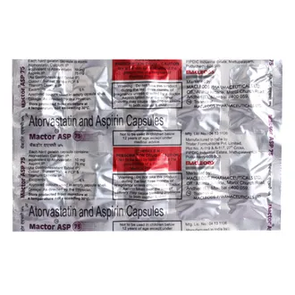 Mactor ASP 75 Capsule is a prescription medicine used to support cardiovascular health by reducing the risk of heart attack, stroke, and other blood clot-related complications. It contains Aspirin (acetylsalicylic acid), a well-known antiplatelet agent that works by preventing blood platelets from sticking together and forming clots in the arteries. This action helps improve blood flow, particularly in individuals at risk of cardiovascular events, including patients with previous heart attacks, strokes, or angina. Mactor ASP 75 Capsule is often prescribed as a low-dose daily therapy under medical supervision to help maintain heart and vascular health. Regular intake, along with a healthy diet, exercise, and lifestyle management, enhances its protective effects, reducing the likelihood of life-threatening cardiovascular events and supporting overall well-being.