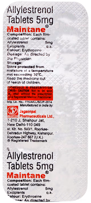 Maintane Tablet is a synthetic form of the hormone progesterone, mainly used to support pregnancy in women who experience recurrent miscarriages or are at risk of premature labor. It works by preparing and maintaining the uterine lining, allowing the embryo to attach properly and reducing abnormal uterine contractions that could lead to premature delivery.