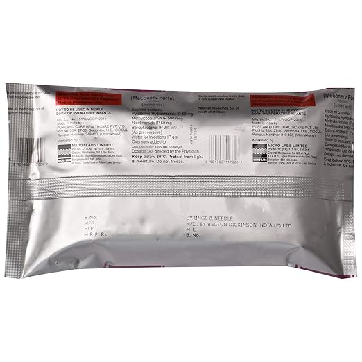 Meconerv Forte Injection contains Methylcobalamin, Niacinamide, and Vitamin B6 (Pyridoxine). These nutrients help replenish the body’s stores of essential vitamins, improving various metabolic processes and nerve health.