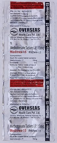 Product Variants & Keywords: Meditrex Tablet 15mg, Meditrex 15mg, Meditrex Cancer Treatment, Meditrex Psoriasis, Meditrex Rheumatoid Arthritis, Meditrex Crohn’s Disease