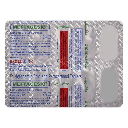 Meftagesic Tablet combines Mefenamic Acid and Paracetamol. It blocks chemical messengers in the brain responsible for pain, fever, and inflammation, providing effective relief from discomfort.