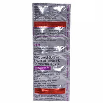 MetoLAR TL 25 Tablet is a combination of Telmisartan and Metoprolol Succinate. Telmisartan relaxes blood vessels to lower blood pressure, while Metoprolol slows the heart rate, reducing cardiac workload and minimizing the risk of heart-related events. Together, they provide a dual-action approach to managing hypertension efficiently.