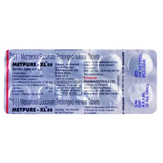 Metpure-XL 50 Tablet, Metpure XL 50, Metpure Beta Blocker, Metpure Hypertension, Metpure Angina, Metpure Arrhythmia, Metpure Migraine Prevention, Metpure Heart Health