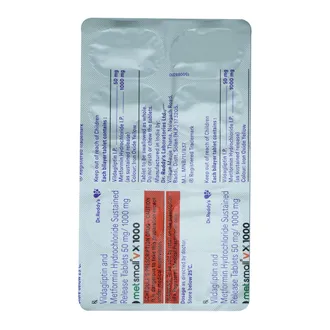 Metsmall VX 1000 Tablet SR is a dual-action medication used to manage type 2 diabetes in adults. It combines two active ingredients that work together to help maintain blood sugar levels within a healthy range, reducing the risk of diabetes-related complications such as kidney issues, vision problems, and cardiovascular conditions.