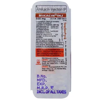 Mikacin 500mg Injection is an antibiotic used to manage and prevent a variety of bacterial infections. It is commonly prescribed for infections affecting the urinary tract, bones, joints, lungs (such as pneumonia), brain, and bloodstream. It is also used in hospitals to prevent infections in patients at risk.