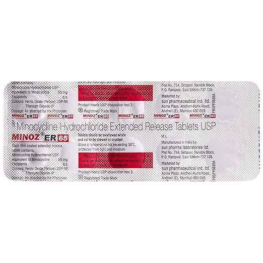 Minoz ER 65 Tablet is a powerful antibiotic designed to combat bacterial infections across various parts of the body, including the lungs, urinary tract, and eyes. It works by inhibiting bacterial growth, effectively treating infections and reducing symptoms. Additionally, it is effective in managing severe acne and certain sexually transmitted infections.