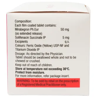 Mirago S 50 Tablet ER combines two active ingredients: Mirabegron and Solifenacin.
