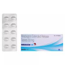 Mirakem 50mg Tablet functions as a beta-3 receptor agonist. By stimulating these receptors in the bladder, it relaxes bladder muscles, reducing the urgency, frequency, and involuntary loss of urine.