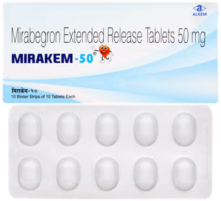 Mirakem 50mg Tablet is prescribed for the treatment of symptoms associated with an overactive bladder, such as frequent urination, a sudden urgent need to urinate, and difficulty controlling urination. It works by relaxing the bladder muscles, which helps increase the bladder’s capacity to hold urine.