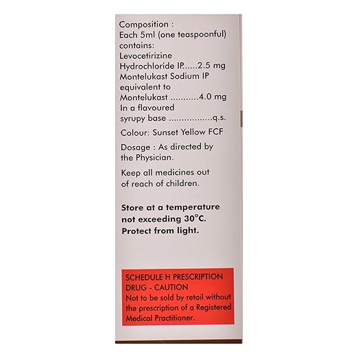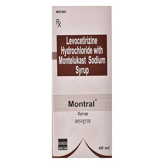 Montral Syrup combines two active ingredients: Levocetirizine and Montelukast. Levocetirizine blocks histamine, a substance in the body that causes allergy symptoms like sneezing, watery eyes, and runny nose. Montelukast works by preventing the action of leukotrienes, which are chemicals responsible for inflammation in the airways. Together, they help reduce allergic reactions and make breathing easier.