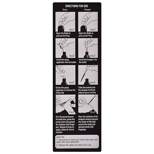 This solution should be applied exactly as directed by your doctor or as per the instructions on the product label. Always make sure your scalp is clean and dry before application. Visible results usually take a few months to appear, and the initial hair growth might be fine, soft, and light in color. Avoid using more than the recommended amount, as this will not speed up results and may increase the risk of side effects. Consistent use is important to maintain hair growth. If you do not see improvement after four to six months, consult your healthcare provider. This product is specifically intended for men and is not meant for women.