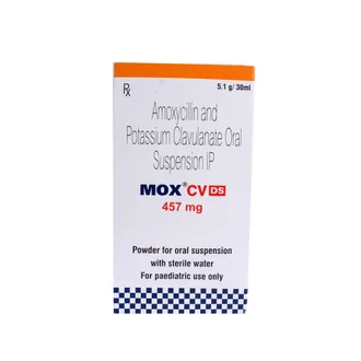 Keywords: Mox CV DS 457 mg Suspension, Mox CV Suspension, Amoxycillin Clavulanic Acid Suspension, Pediatric Antibiotic, Child Infection Medicine, Ear Infection Antibiotic, Respiratory Infection Treatment, Skin Infection Medicine