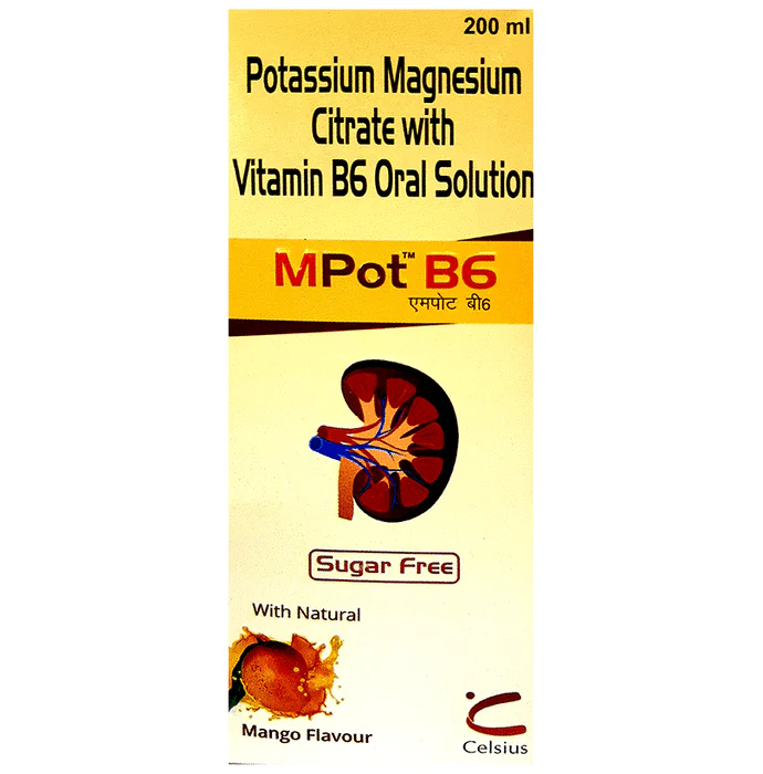 Mpot B6 Oral Solution Natural Mango Sugar Free is a combination medicine used for the treatment and prevention of kidney stones. It works by increasing urine pH, preventing the formation and growth of kidney crystals, and supporting the breakdown of small stones.