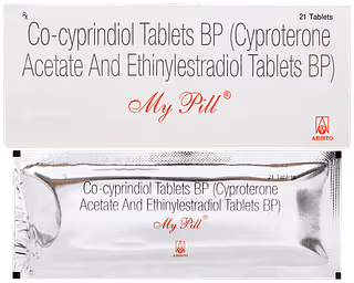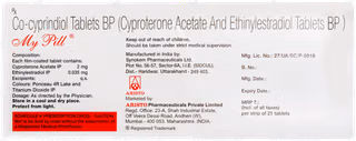 MY Pill Tablet is a combination hormonal treatment used to manage symptoms associated with polycystic ovary syndrome (PCOS), such as irregular menstrual cycles, excessive hair growth (hirsutism), and acne. Additionally, it serves as a contraceptive, so it is advised not to use any other birth control pills while on this medication.