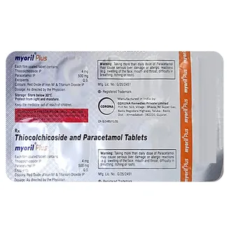 Myoril Plus Tablet is a combination medicine that helps relieve pain caused by muscle spasms. It works by relaxing tight muscles and reducing discomfort, supporting easier movement and improved daily activity.