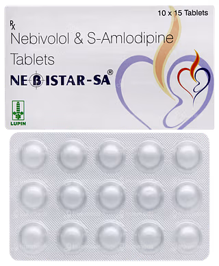 Nebistar-SA Tablet is a combination medicine containing Nebivolol (a beta-blocker) and S-Amlodipine (a calcium channel blocker). It is used for the management of high blood pressure when a single medicine alone is not sufficient. This combination helps relax blood vessels, reduce heart strain, and maintain healthy blood flow, thereby lowering the risk of heart attack, stroke, and other cardiovascular complications.