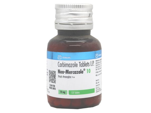 Neo-Mercazole 10 Tablet is part of a class of medicines known as anti-thyroid agents and is prescribed for the management of hyperthyroidism, a condition in which the thyroid gland produces excessive thyroid hormones. This medication works by limiting the production of these hormones, helping to restore normal thyroid function and alleviate symptoms such as rapid heartbeat, weight loss, irritability, and nervousness. It should be taken exactly as directed by your doctor in the prescribed dose and duration. Before starting treatment, it’s important to inform your healthcare provider if you are allergic to this medicine or any of its components. Routine blood tests may be recommended by your doctor to monitor blood cell counts and liver function. If you experience signs like persistent fever, unusual bleeding, sore throat, or general unwellness, notify your doctor immediately. Some individuals taking this medication may notice side effects such as skin rash, nausea, tingling sensations, headache, joint pain, gastrointestinal upset, or even hair thinning. In rare cases, a serious drop in white blood cell count (agranulocytosis) may occur. These effects are typically manageable, but medical advice should be sought if they persist or worsen. Neo-Mercazole 10 Tablet can be taken with or without food but should ideally be taken at the same time each day for optimal effectiveness. If a dose is missed, take it as soon as you remember. If it’s nearly time for the next one, skip the missed dose and continue with your usual schedule—never take a double dose. Use of this medicine during pregnancy is generally not advised due to potential risks to the developing baby unless clearly directed by a healthcare provider in critical situations. Caution is also advised during breastfeeding, as the medicine might pass into breastmilk and affect the infant. Driving should be avoided if you feel drowsy, dizzy, or otherwise unwell while taking this medicine. Those with liver issues should use Neo-Mercazole under close medical supervision, and dose adjustments may be necessary. There is limited data on its use in individuals with kidney problems, so it’s best to consult your doctor in such cases. Always follow medical advice for safe and effective use of this medication in managing thyroid overactivity.