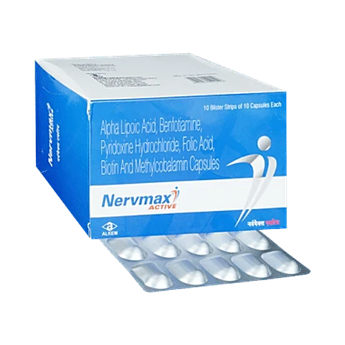Nervmax Active Capsule is a nutritional supplement formulated to address deficiencies of essential vitamins and minerals in the body. It helps restore the balance of nutrients required for the proper functioning of various physiological processes. This supplement supports nerve health, energy metabolism, red blood cell production, and overall well-being.