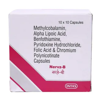 Nervz-B Capsule provides essential nutrients that support the proper functioning of vital organs such as the brain, heart, and nervous system. Its antioxidant components help shield the body from oxidative damage. It also aids in red blood cell production and improves iron absorption, which boosts hemoglobin levels and helps prevent anemia. Additionally, it may support healthy blood sugar levels and relieve nerve-related discomfort, such as neuropathy, in individuals with diabetes.