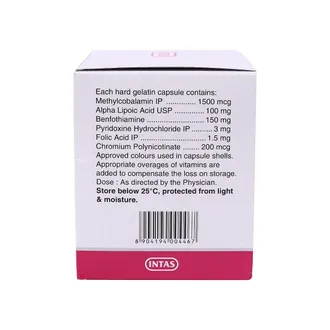 This capsule combines four key ingredients: Methylcobalamin, Alpha Lipoic Acid, Vitamin B6 (Pyridoxine), and Folic Acid. These nutrients work together to support body functions, promote growth, improve nerve health, and enhance overall well-being.