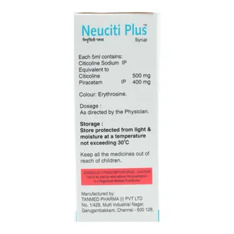 Neuciti Plus Syrup is a **neuroprotective and antioxidant formulation** designed to support **brain, nerve, and cognitive health**. It contains **Citicoline and Piracetam**, two clinically proven neuro-enhancers that work synergistically to improve memory, focus, and mental alertness. This combination helps in the regeneration of nerve cells, enhances cerebral blood flow, and supports neurotransmitter function.