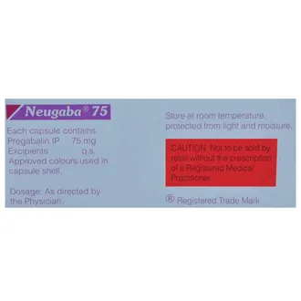 Neugaba 75 Capsule is a **prescription medicine** used to treat **neuropathic pain** (nerve pain) caused by conditions such as diabetes, spinal cord injury, shingles (herpes zoster infection), or nerve damage. It contains **Pregabalin (75 mg)**, which works by calming overactive nerve signals in the brain that cause pain or seizures.