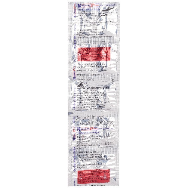 Nodimox Plus 500 Capsule contains two antibiotics: Amoxicillin and Cloxacillin. These antibiotics work by disrupting the bacteria’s cell wall formation, which is essential for their survival, effectively treating the infection.