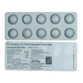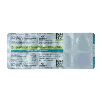 Nurokind-Z More Tablet is a multivitamin and multimineral supplement formulated to boost immunity, improve overall health, and enhance energy levels. It contains essential vitamins and minerals that help protect the body from free radical damage and support healthy metabolism. This tablet is ideal for individuals experiencing fatigue, nutritional deficiencies, or low immunity due to a hectic lifestyle or advancing age.