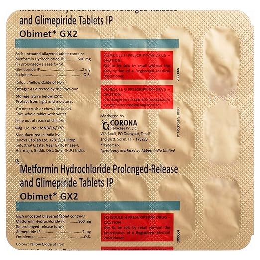 Obimet GX2 Tablet PR belongs to the group of medicines known as anti-diabetic drugs. It combines two active ingredients to help manage type 2 diabetes in adults. The medicine works by controlling blood sugar levels, contributing to better overall diabetes management.