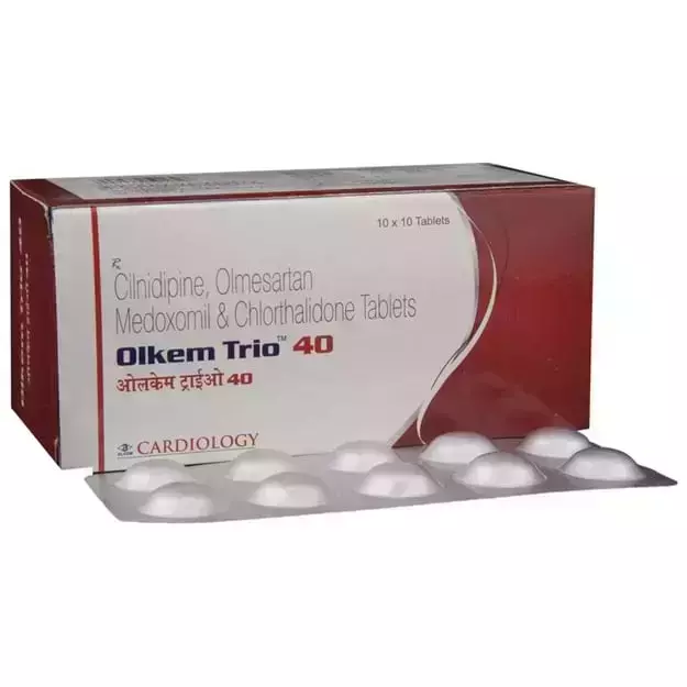 Olkem Trio 40 Tablet is a fixed-dose combination medication prescribed for the treatment of high blood pressure (hypertension), particularly when a single drug is not sufficient to manage the condition. By reducing elevated blood pressure, it lowers the risk of cardiovascular complications such as heart attacks and strokes.