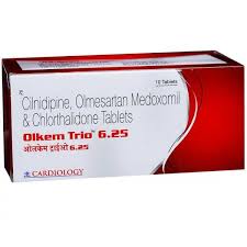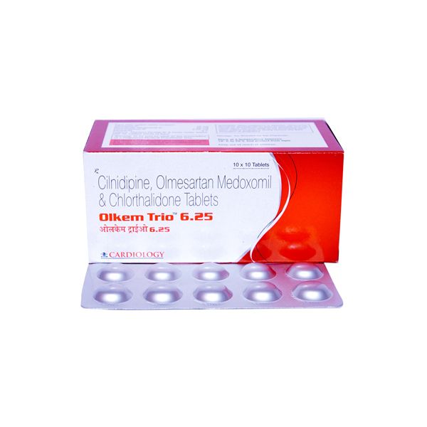 Olkem Trio 6.25 Tablet is a combination medication prescribed to manage high blood pressure (hypertension), especially when single-drug treatment does not provide adequate control. By effectively lowering blood pressure, this tablet helps reduce the risk of serious cardiovascular events such as heart attacks and strokes. The medication contains three active components that work together to improve blood circulation and reduce strain on the heart.