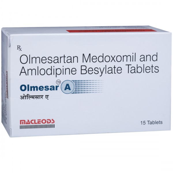 OLMesar A Tablet contains two active ingredients: Olmesartan Medoxomil and Amlodipine. Olmesartan is an angiotensin receptor blocker (ARB) that relaxes blood vessels, while Amlodipine is a calcium channel blocker (CCB) that improves heart efficiency. Together, they lower blood pressure and make it easier for the heart to pump blood throughout the body.