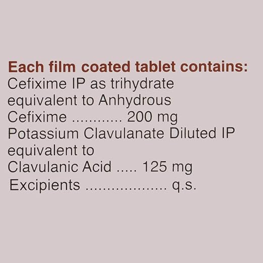 Dual active ingredients: Cefixime stops bacteria from forming protective cell walls, while Clavulanic Acid enhances its potency and prevents antibiotic resistance.