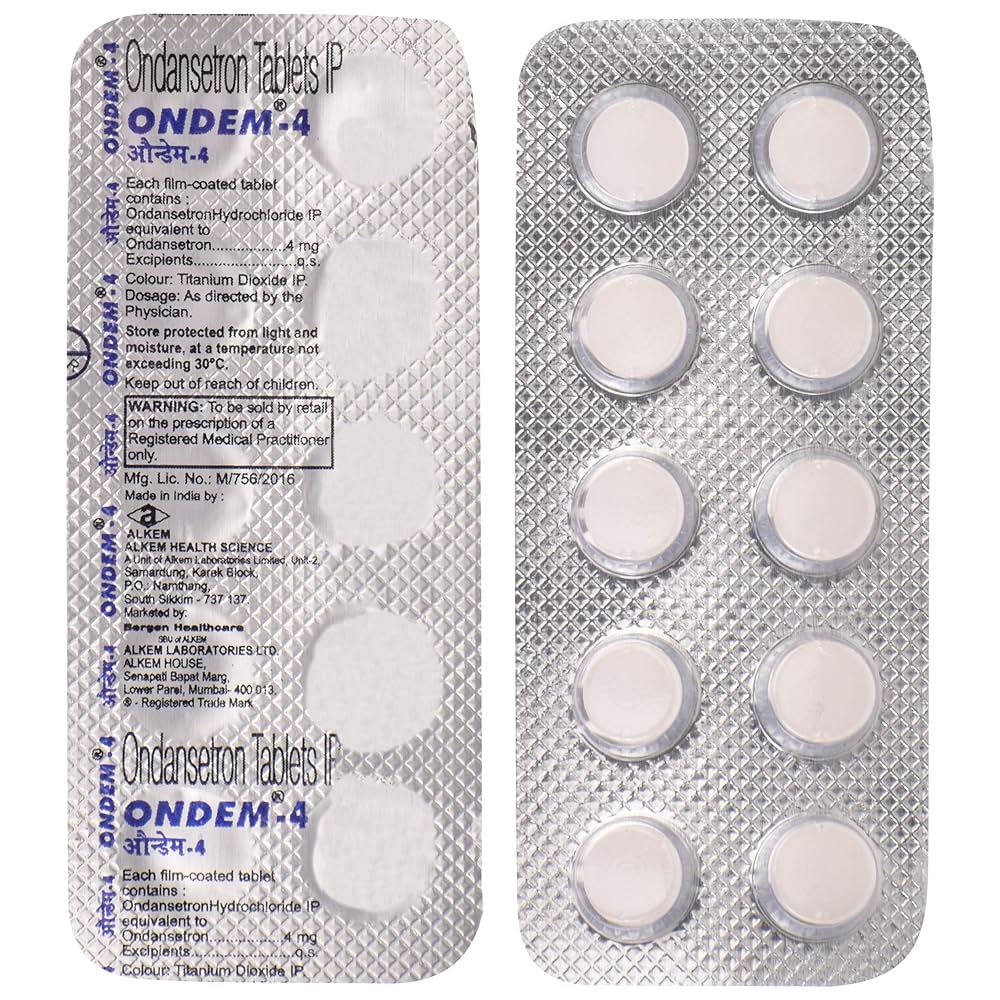 Ondem 4 Tablet is a medication used to manage nausea and vomiting caused by various medical conditions such as stomach discomfort. It is also effective in preventing nausea and vomiting related to surgery, chemotherapy, or radiotherapy.