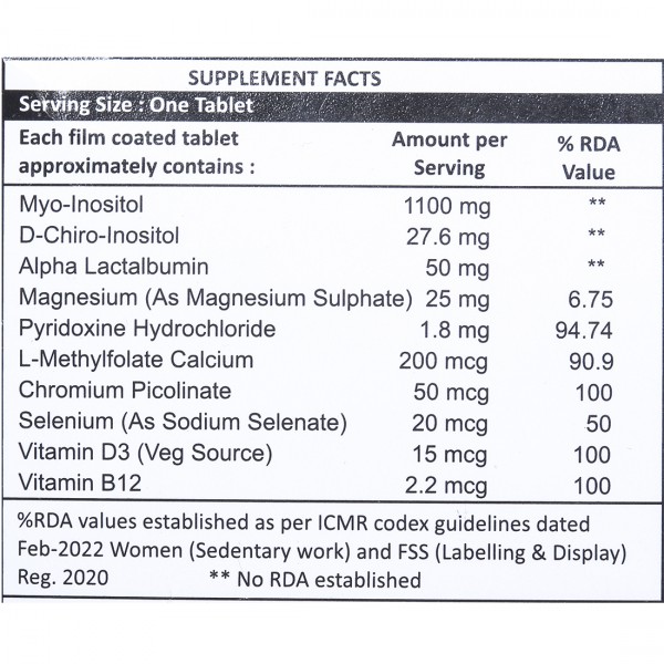 Oosure Tablet contains Myo-inositol, a naturally occurring compound that plays a key role in hormone regulation and cellular signaling. It helps improve insulin resistance and supports healthy ovarian function, contributing to improved reproductive health and metabolic balance.