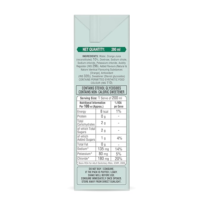 ORSL® Rehydrate Drink Orange is a scientifically balanced electrolyte beverage crafted to restore fluids and essential minerals while keeping calorie intake in check. Powered by natural stevia, this zero-calorie fruit-based drink delivers effective rehydration and a refreshing orange flavor. Enriched with Vitamin C and three vital electrolytes—sodium, potassium, and chloride—it helps the body recover from dehydration, fatigue, or exertion by replenishing lost fluids and maintaining the body’s electrolyte equilibrium. Designed as a ready-to-serve fruit beverage, this drink provides a clean, energizing hydration experience that supports overall vitality without added sugar or unnecessary calories. It is a food-grade electrolyte drink registered under FSSAI standards and should not be mistaken for a medical ORS or used during diarrhea.