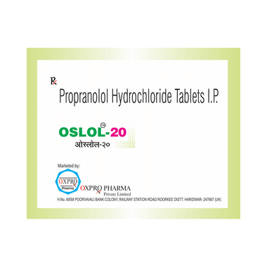 Oslol 20 Tablet is a prescription medication designed to manage cardiovascular conditions, prevent migraines, and support overall heart function. It contains propranolol, a beta-blocker that slows the heart rate, relaxes blood vessels, and improves blood flow. This reduces strain on the heart, prevents chest pain (angina), and helps regulate abnormal heart rhythms. The medicine is also used to manage pheochromocytoma, a rare adrenal gland tumor, by controlling high-adrenaline effects. Additionally, Oslol 20 Tablet can help reduce anxiety-related symptoms and prevent migraine attacks. Regular use as prescribed ensures effective management of these conditions and helps maintain overall cardiovascular stability.