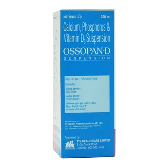 Ossopan-D Suspension is a nutritional supplement enriched with Calcium, Phosphorus, and Vitamin D3, specially designed to support strong bones, healthy joints, and overall skeletal health. It helps maintain bone density, promotes muscle strength, and aids in the prevention of conditions like osteoporosis, rickets, and bone weakness.