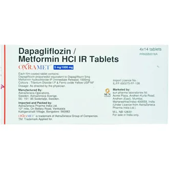 OXRamet 5mg/1000mg Tablet IR, OXRamet Tablet, Dapagliflozin Metformin Combination, Type 2 Diabetes Medicine, Blood Sugar Control Tablet, Antidiabetic Combination Tablet, Diabetes Management Medication