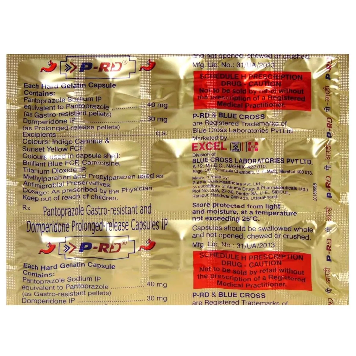 P-RD Capsule PR is a prescription medication used to manage conditions such as acid reflux (gastroesophageal reflux disease), indigestion (dyspepsia), and gastritis. It works by reducing the production of stomach acid, helping to ease symptoms like heartburn, stomach discomfort, and irritation.